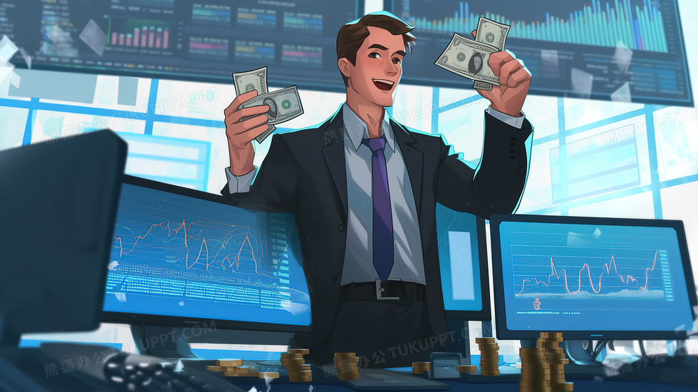 本作品内容为股票上涨手拿钞票的男士插画, 格式为 jpg, 大小3 MB, 图片尺寸为2912 x 1632, 源文件无水印, 欢迎使用熊猫办公。 如认为平台内容涉嫌侵权,可通过邮件:tousu@tukuppt.com提出书面通知,我们将及时处理。