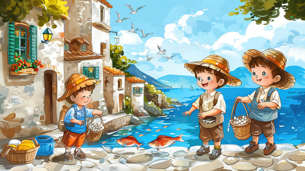 本作品内容为卡通手绘风格孩子们捕鱼的插画, 格式为 jpg, 大小4 MB, 图片尺寸为2912 x 1632, 源文件无水印, 欢迎使用熊猫办公。 如认为平台内容涉嫌侵权,可通过邮件:tousu@tukuppt.com提出书面通知,我们将及时处理。