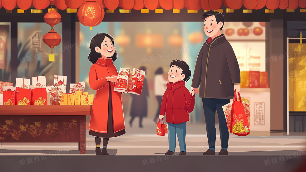 本作品内容为春节过年家人买年货办年货插画, 格式为 jpg, 大小3 MB, 图片尺寸为2912 x 1632, 源文件无水印, 欢迎使用熊猫办公。 如认为平台内容涉嫌侵权,可通过邮件:tousu@tukuppt.com提出书面通知,我们将及时处理。