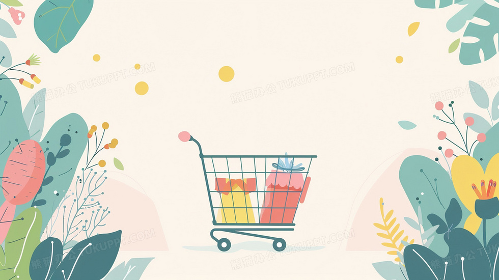 本作品内容为卡通购物车电商促销宣传消费背景, 格式为 jpg, 大小2 MB, 图片尺寸为2912 x 1632, 作品中背景图片无需修改, 源文件无水印,可以直接使用, 欢迎使用熊猫办公。 如认为平台内容涉嫌侵权,可通过邮件:tousu@tukuppt.com提出书面通知,我们将及时处理。