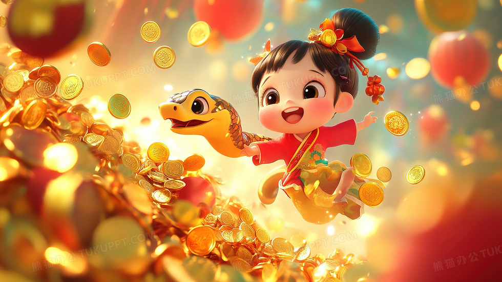 本作品内容为蛇年金币与蛇卡通女孩插画, 格式为 jpg, 大小3 MB, 图片尺寸为2912 x 1632, 源文件无水印, 欢迎使用熊猫办公。 如认为平台内容涉嫌侵权,可通过邮件:tousu@tukuppt.com提出书面通知,我们将及时处理。