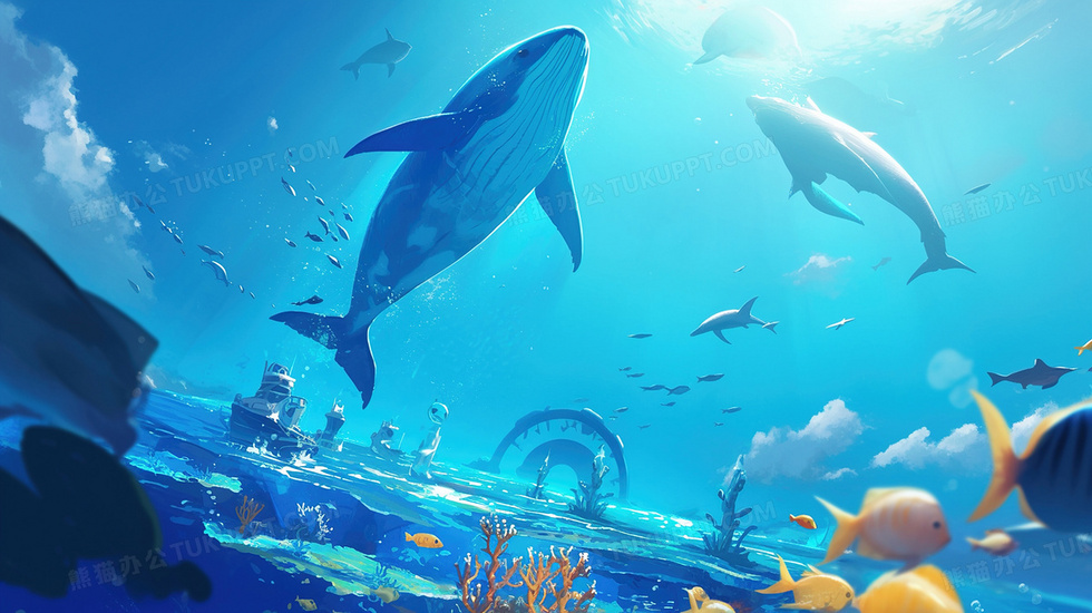 本作品内容为海底世界海洋生物海豚插画, 格式为 jpg, 大小3 MB, 图片尺寸为2912 x 1632, 源文件无水印, 欢迎使用熊猫办公。 如认为平台内容涉嫌侵权,可通过邮件:tousu@tukuppt.com提出书面通知,我们将及时处理。