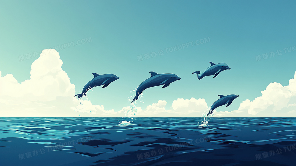 本作品内容为卡通风海面上的海豚背景, 格式为 jpg, 大小3 MB, 图片尺寸为2912 x 1632, 作品中背景图片无需修改, 源文件无水印,可以直接使用, 欢迎使用熊猫办公。 如认为平台内容涉嫌侵权,可通过邮件:tousu@tukuppt.com提出书面通知,我们将及时处理。