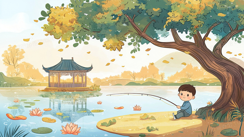 本作品内容为池塘边树下钓鱼的小男孩插画, 格式为 jpg, 大小3 MB, 图片尺寸为2912 x 1632, 源文件无水印, 欢迎使用熊猫办公。 如认为平台内容涉嫌侵权,可通过邮件:tousu@tukuppt.com提出书面通知,我们将及时处理。