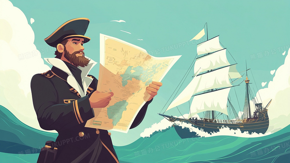 本作品内容为船长手拿地图插画, 格式为 jpg, 大小3 MB, 图片尺寸为2912 x 1632, 源文件无水印, 欢迎使用熊猫办公。 如认为平台内容涉嫌侵权,可通过邮件:tousu@tukuppt.com提出书面通知,我们将及时处理。