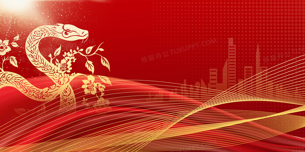 本作品内容为红金大气蛇年年会背景, 格式为 psd, 大小194 MB, 图片尺寸为4724 x 2362, 作品中背景图片无需修改, 源文件无水印,可以直接使用, 欢迎使用熊猫办公。 如认为平台内容涉嫌侵权,可通过邮件:tousu@tukuppt.com提出书面通知,我们将及时处理。