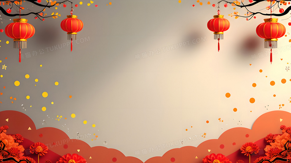 本作品内容为现代极简风红黄剪纸灯笼点缀中式背景, 格式为 jpg, 大小2 MB, 图片尺寸为2912 x 1638, 作品中背景图片无需修改, 源文件无水印,可以直接使用, 欢迎使用熊猫办公。 如认为平台内容涉嫌侵权,可通过邮件:tousu@tukuppt.com提出书面通知,我们将及时处理。