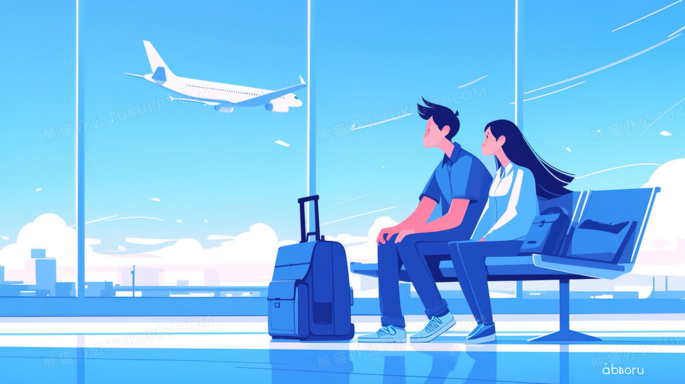 本作品内容为飞机场拿行李箱候机的男孩女孩插画, 格式为 jpg, 大小2 MB, 图片尺寸为2912 x 1632, 源文件无水印, 欢迎使用熊猫办公。 如认为平台内容涉嫌侵权,可通过邮件:tousu@tukuppt.com提出书面通知,我们将及时处理。