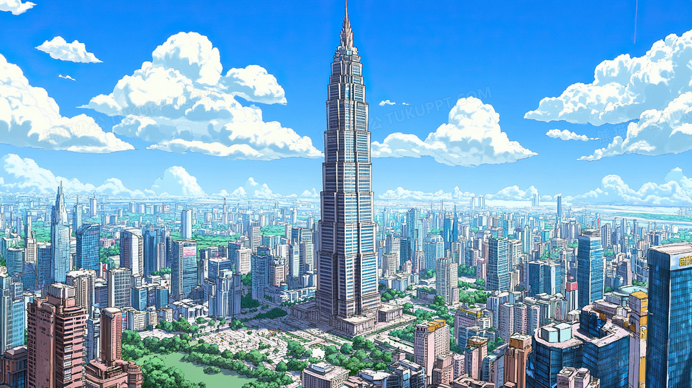 本作品内容为上海金茂大厦插画, 格式为 jpg, 大小5 MB, 图片尺寸为2912 x 1632, 源文件无水印, 欢迎使用熊猫办公。 如认为平台内容涉嫌侵权,可通过邮件:tousu@tukuppt.com提出书面通知,我们将及时处理。