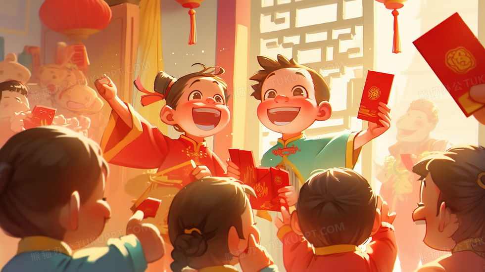 本作品内容为春节长辈给孩子们发红包开心插画, 格式为 jpg, 大小2 MB, 图片尺寸为2912 x 1632, 源文件无水印, 欢迎使用熊猫办公。 如认为平台内容涉嫌侵权,可通过邮件:tousu@tukuppt.com提出书面通知,我们将及时处理。