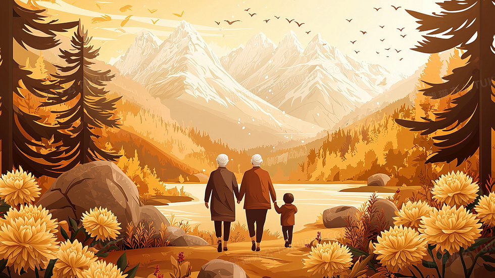 本作品内容为重阳树林散步的老人小孩花卉插画, 格式为 jpg, 大小3 MB, 图片尺寸为2912 x 1632, 源文件无水印, 欢迎使用熊猫办公。 如认为平台内容涉嫌侵权,可通过邮件:tousu@tukuppt.com提出书面通知,我们将及时处理。
