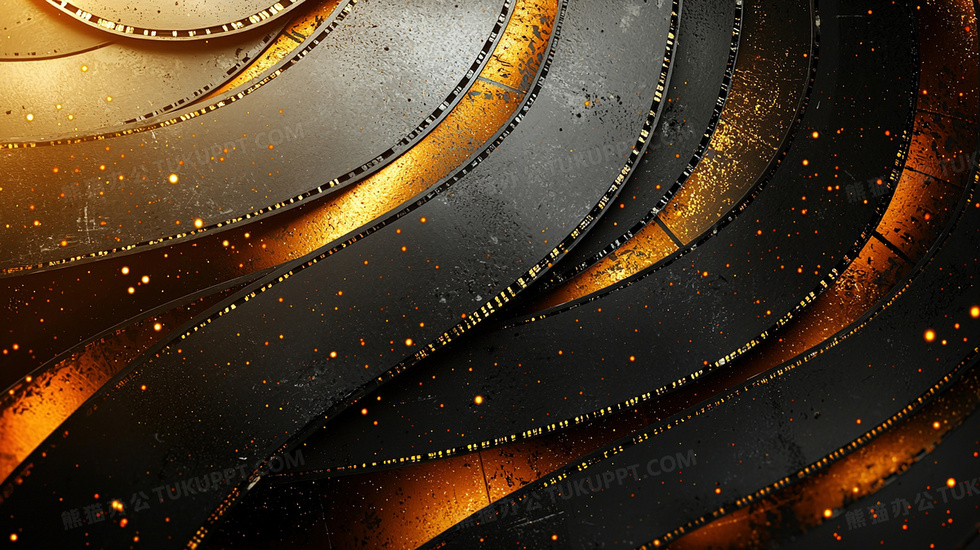 本作品内容为黑金色复古电影胶片背景, 格式为 jpg, 大小3 MB, 图片尺寸为2912 x 1632, 作品中背景图片无需修改, 源文件无水印,可以直接使用, 欢迎使用熊猫办公。 如认为平台内容涉嫌侵权,可通过邮件:tousu@tukuppt.com提出书面通知,我们将及时处理。