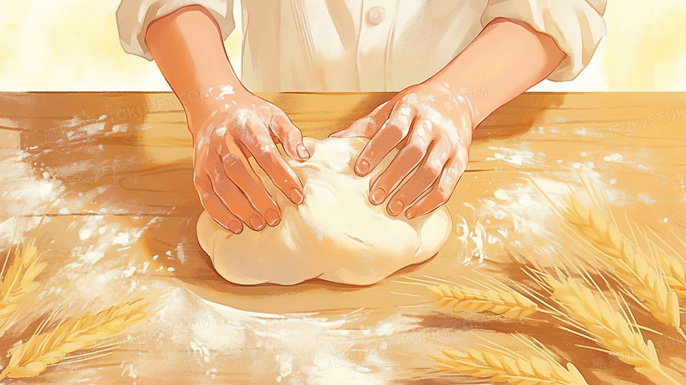 本作品内容为木板上和面的手部特写创意插画, 格式为 jpg, 大小3 MB, 图片尺寸为2912 x 1632, 源文件无水印, 欢迎使用熊猫办公。 如认为平台内容涉嫌侵权,可通过邮件:tousu@tukuppt.com提出书面通知,我们将及时处理。