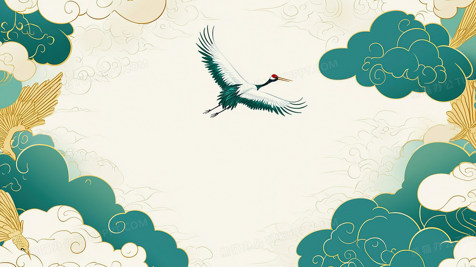 本作品内容为中国风祥云飞鸟边框造型背景, 格式为 jpg, 大小3 MB, 图片尺寸为2912 x 1632, 作品中背景图片无需修改, 源文件无水印,可以直接使用, 欢迎使用熊猫办公。 如认为平台内容涉嫌侵权,可通过邮件:tousu@tukuppt.com提出书面通知,我们将及时处理。
