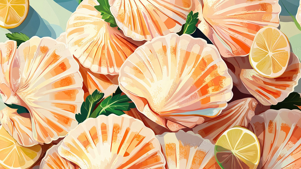 本作品内容为生鲜食材海鲜扇贝插画, 格式为 jpg, 大小3 MB, 图片尺寸为2912 x 1632, 源文件无水印, 欢迎使用熊猫办公。 如认为平台内容涉嫌侵权,可通过邮件:tousu@tukuppt.com提出书面通知,我们将及时处理。