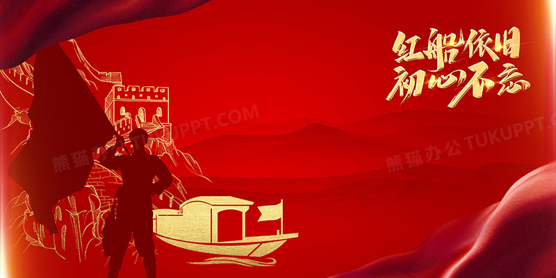 本作品内容为中国风红金党的精神南湖红船广告背景, 格式为 psd, 大小4 MB, 图片尺寸为4724 x 2362, 作品中背景图片无需修改, 源文件无水印,可以直接使用, 欢迎使用熊猫办公。 如认为平台内容涉嫌侵权,可通过邮件:tousu@tukuppt.com提出书面通知,我们将及时处理。