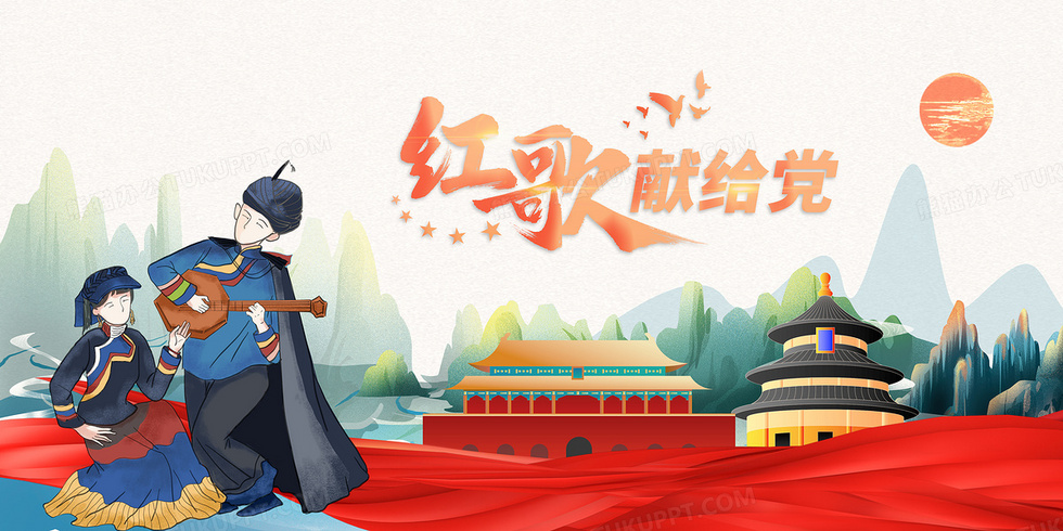 本作品内容为唱支山歌给党听少数民族歌唱祖国党建背景, 格式为 psd, 大小71 MB, 图片尺寸为4724 x 2362, 作品中背景图片无需修改, 源文件无水印,可以直接使用, 欢迎使用熊猫办公。 如认为平台内容涉嫌侵权,可通过邮件:tousu@tukuppt.com提出书面通知,我们将及时处理。