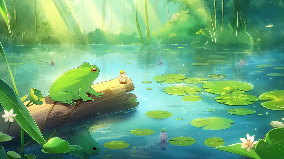 本作品内容为卡通风夏日荷塘坐在树干上看向湖面的青蛙插图, 格式为 jpg, 大小3 MB, 图片尺寸为2688 x 1508, 源文件无水印, 欢迎使用熊猫办公。 如认为平台内容涉嫌侵权,可通过邮件:tousu@tukuppt.com提出书面通知,我们将及时处理。