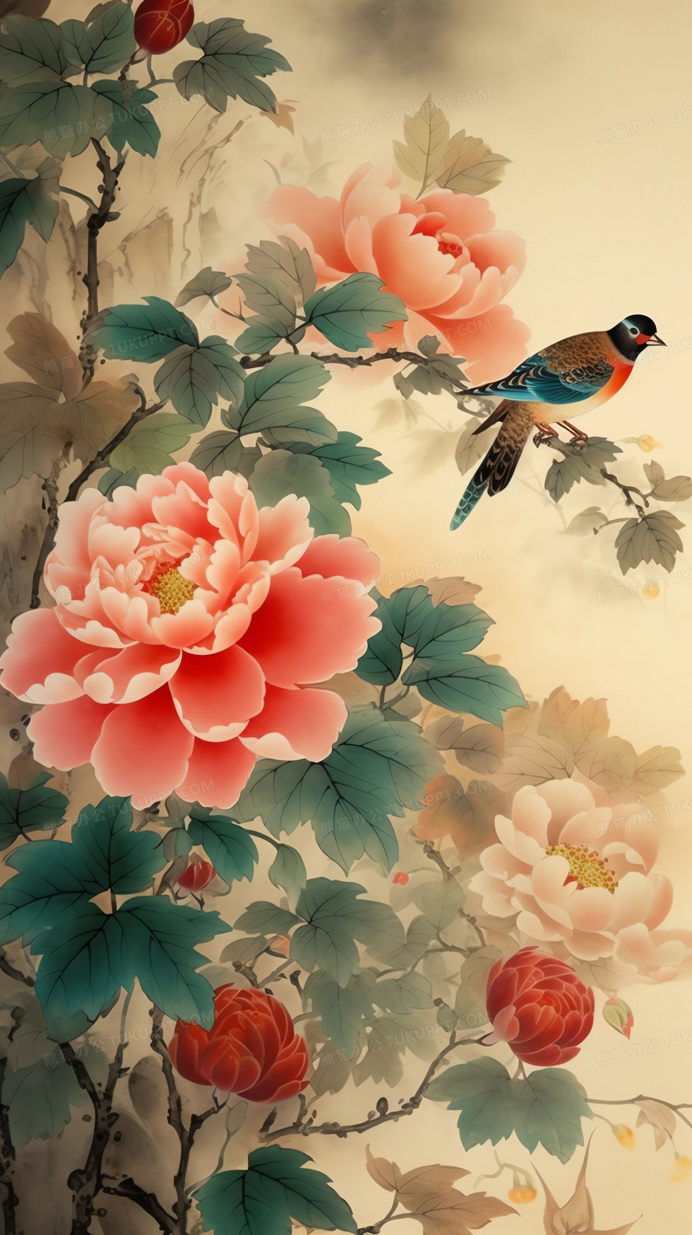 本作品内容为竖版中国风线条灵动花鸟山水画, 格式为 jpg, 大小4 MB, 图片尺寸为1632 x 2912, 源文件无水印, 欢迎使用熊猫办公。 如认为平台内容涉嫌侵权,可通过邮件:tousu@tukuppt.com提出书面通知,我们将及时处理。