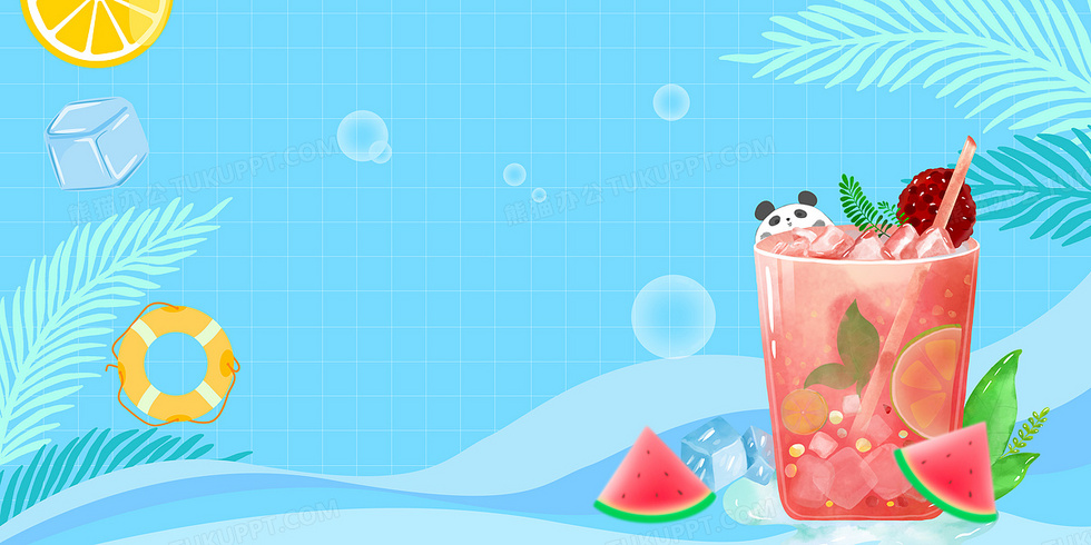 本作品内容为夏日饮品手绘清凉背景, 格式为 psd, 大小48 MB, 图片尺寸为9449 x 4724, 作品中背景图片无需修改, 源文件无水印,可以直接使用, 欢迎使用熊猫办公。 如认为平台内容涉嫌侵权,可通过邮件:tousu@tukuppt.com提出书面通知,我们将及时处理。