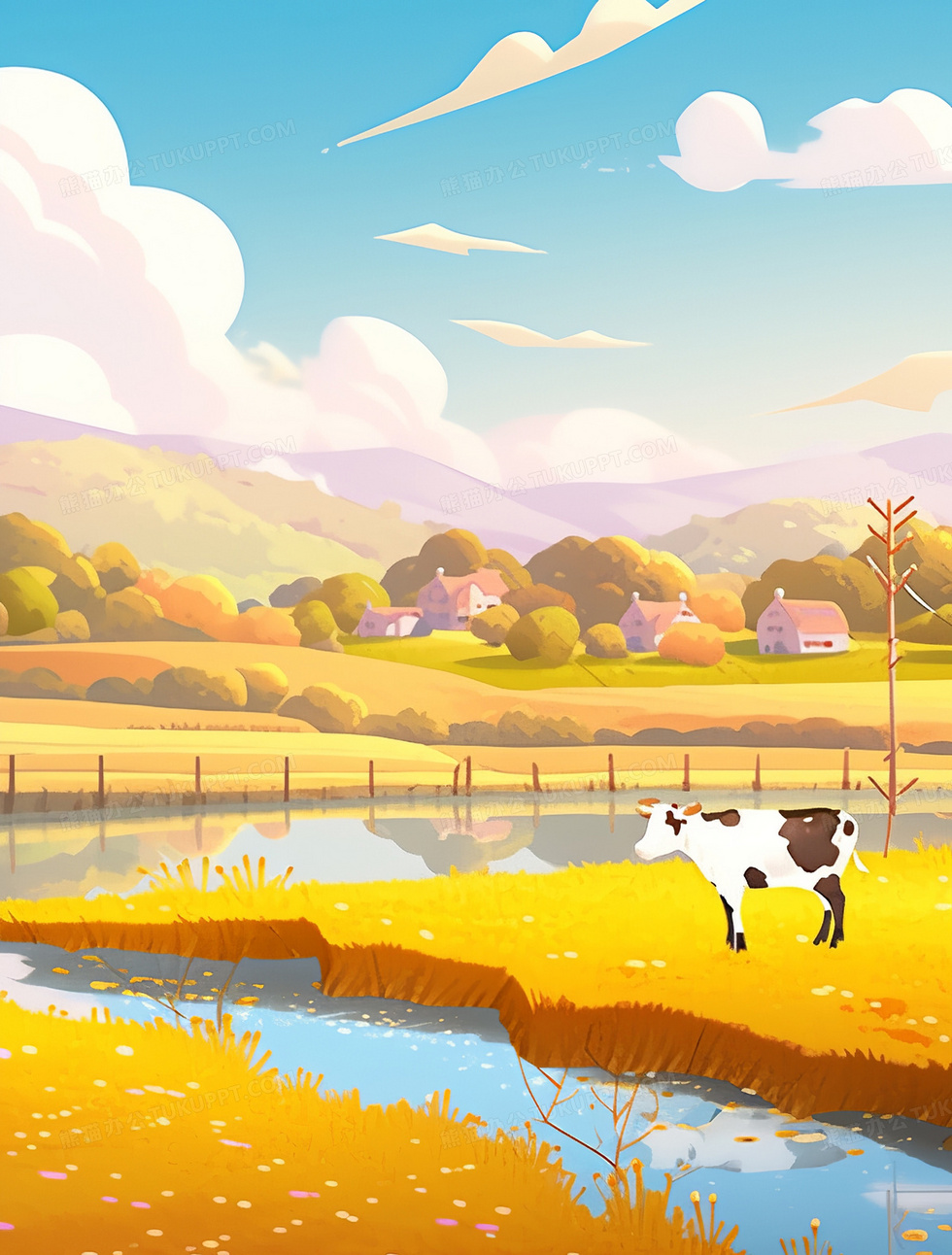 本作品内容为金色秋天郊外农庄唯美自然风光创意插画, 格式为 jpg, 大小2 MB, 图片尺寸为1632 x 2152, 源文件无水印, 欢迎使用熊猫办公。 如认为平台内容涉嫌侵权,可通过邮件:tousu@tukuppt.com提出书面通知,我们将及时处理。