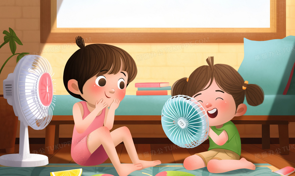 本作品内容为炎热夏天可爱的小朋友在客厅吹着电风扇乘凉避暑插图, 格式为 jpg, 大小2 MB, 图片尺寸为2848 x 1696, 源文件无水印, 欢迎使用熊猫办公。 如认为平台内容涉嫌侵权,可通过邮件:tousu@tukuppt.com提出书面通知,我们将及时处理。