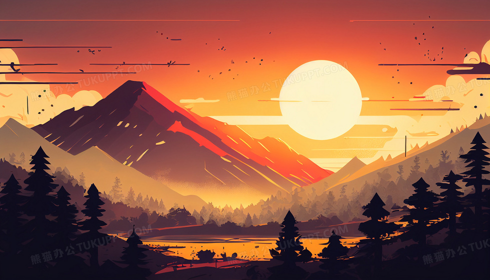 本作品内容为极简主义彩色户外群山自然风景创意插画, 格式为 jpg, 大小4 MB, 图片尺寸为2688 x 1536, 源文件无水印, 欢迎使用熊猫办公。 如认为平台内容涉嫌侵权,可通过邮件:tousu@tukuppt.com提出书面通知,我们将及时处理。