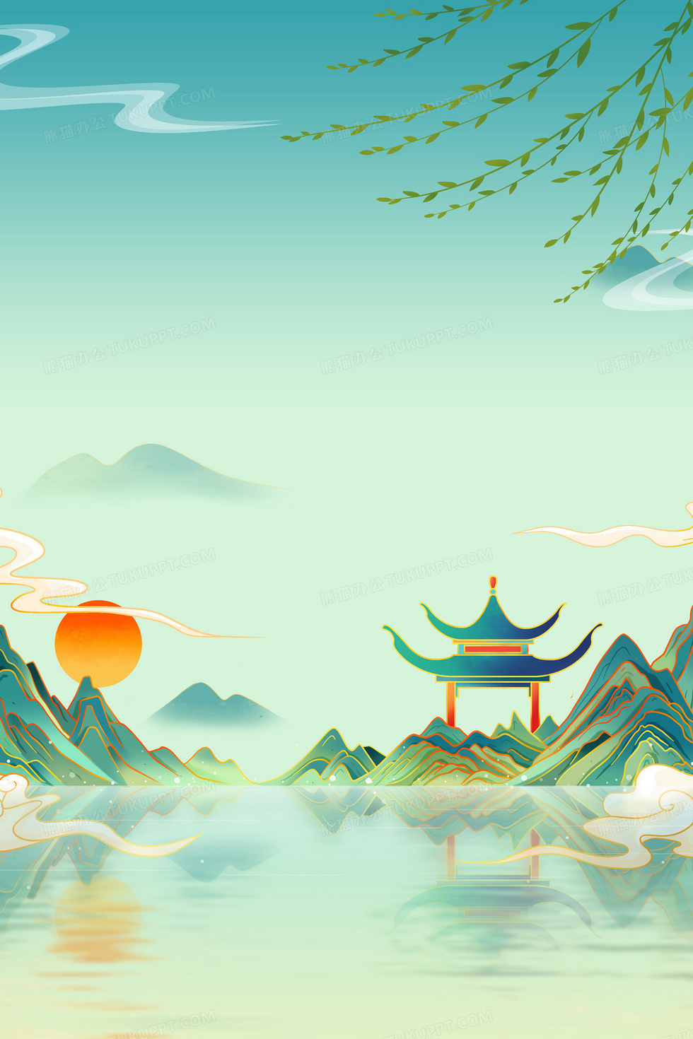 本作品内容为创意国潮风山水中式背景, 格式为 psd, 大小26 MB, 图片尺寸为3543 x 5315, 作品中背景图片无需修改, 源文件无水印,可以直接使用, 欢迎使用熊猫办公。 如认为平台内容涉嫌侵权,可通过邮件:tousu@tukuppt.com提出书面通知,我们将及时处理。