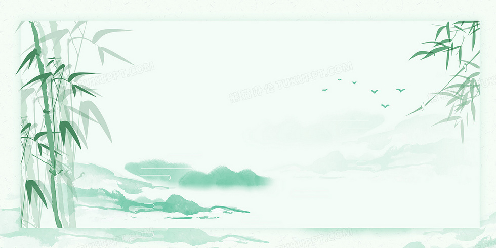 本作品内容为绿色简约水墨竹子背景, 格式为 psd, 大小31 MB, 图片尺寸为4724 x 2362, 作品中背景图片无需修改, 源文件无水印,可以直接使用, 欢迎使用熊猫办公。 如认为平台内容涉嫌侵权,可通过邮件:tousu@tukuppt.com提出书面通知,我们将及时处理。