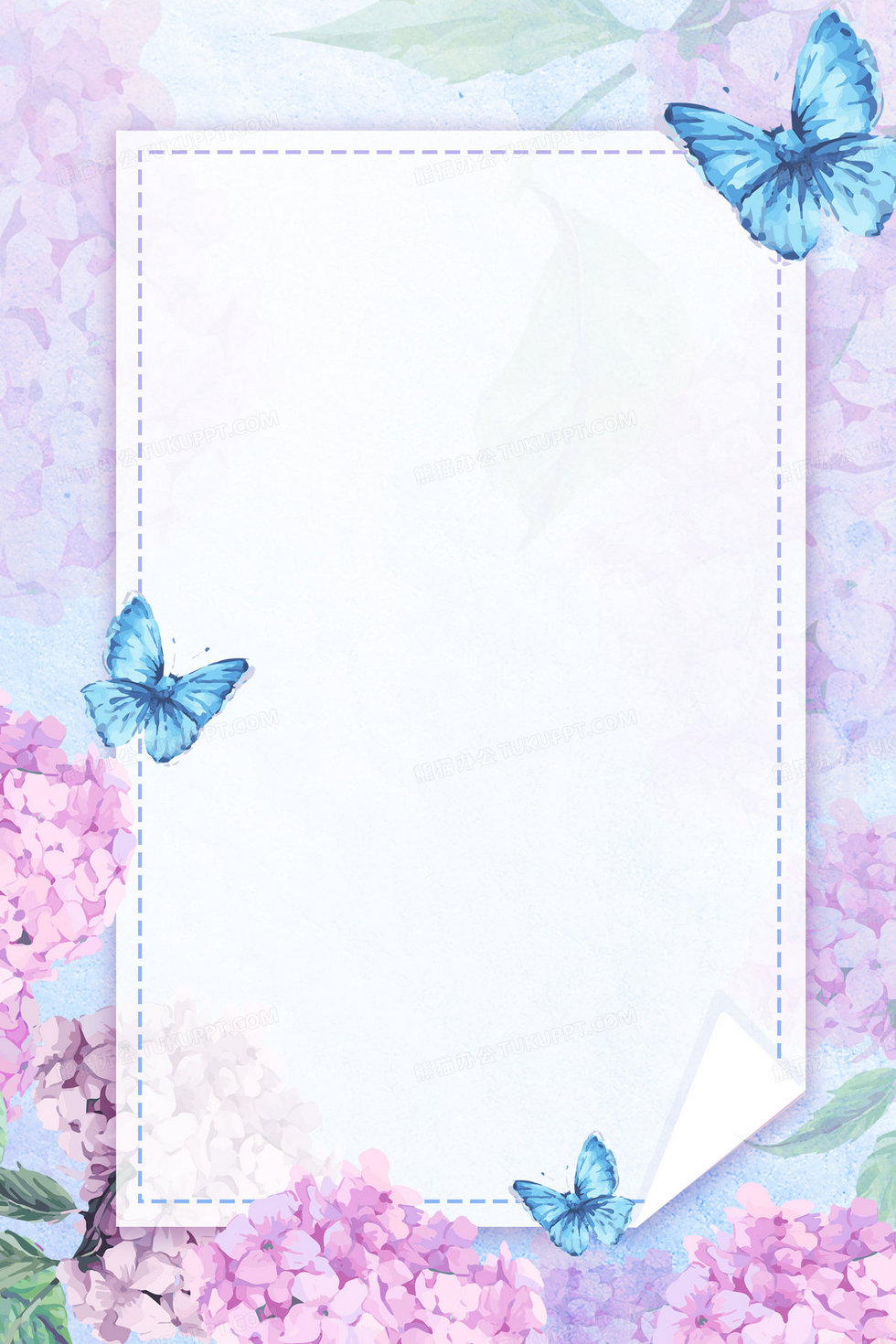 本作品内容为手绘水彩创意绣球花卉清新背景, 格式为 psd, 大小126 MB, 图片尺寸为2362 x 3543, 作品中背景图片无需修改, 源文件无水印,可以直接使用, 欢迎使用熊猫办公。 如认为平台内容涉嫌侵权,可通过邮件:tousu@tukuppt.com提出书面通知,我们将及时处理。