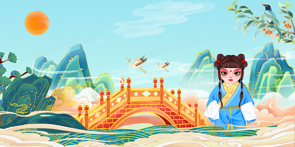 本作品内容为国潮风戏曲人物娃娃生背景, 格式为 psd, 大小241 MB, 图片尺寸为7087 x 3543, 作品中背景图片无需修改, 源文件无水印,可以直接使用, 欢迎使用熊猫办公。 如认为平台内容涉嫌侵权,可通过邮件:tousu@tukuppt.com提出书面通知,我们将及时处理。
