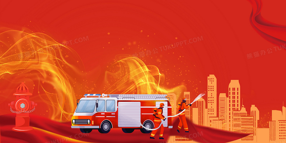 本作品内容为红色消防车灭火救援背景, 格式为 psd, 大小158 MB, 图片尺寸为7087 x 3543, 作品中背景图片无需修改, 源文件无水印,可以直接使用, 欢迎使用熊猫办公。 如认为平台内容涉嫌侵权,可通过邮件:tousu@tukuppt.com提出书面通知,我们将及时处理。