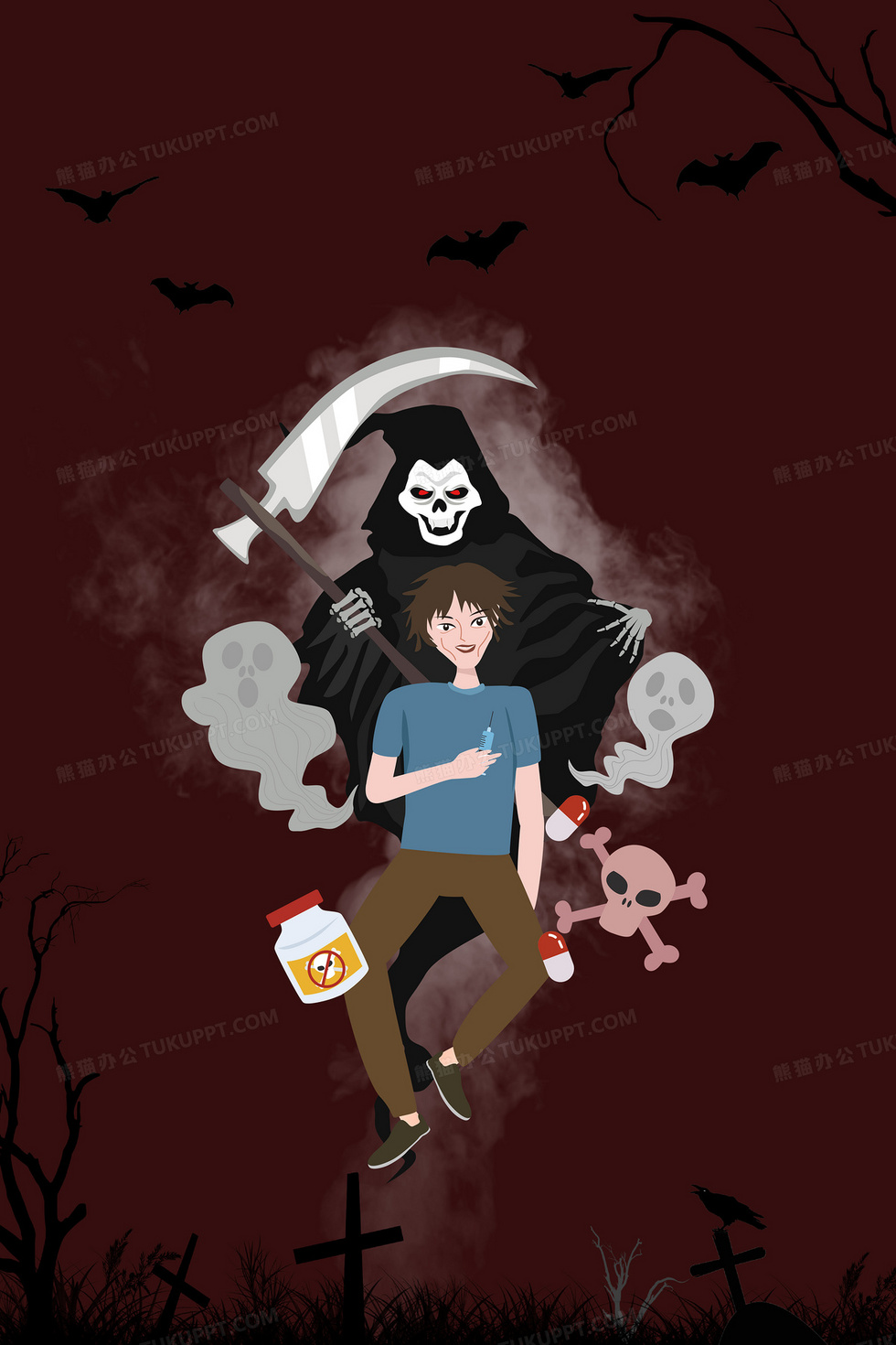 本作品内容为创意远离毒品珍爱生命公益背景, 格式为 psd, 大小15 MB, 图片尺寸为3543 x 5315, 作品中背景图片无需修改, 源文件无水印,可以直接使用, 欢迎使用熊猫办公。 如认为平台内容涉嫌侵权,可通过邮件:tousu@tukuppt.com提出书面通知,我们将及时处理。