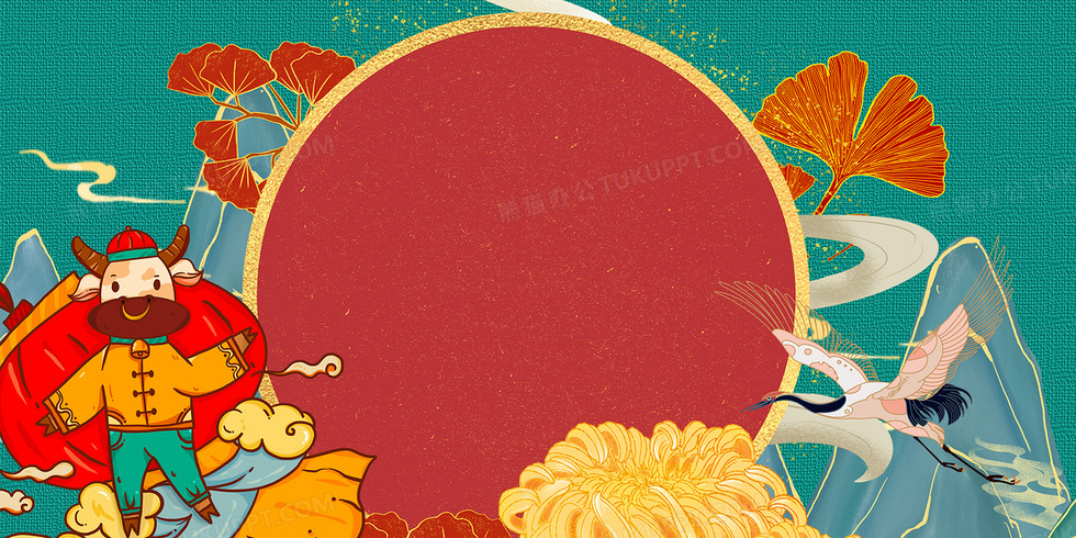 本作品内容为绿色简约国潮牛年背景, 格式为 psd, 大小55 MB, 图片尺寸为4724 x 2362, 作品中背景图片无需修改, 源文件无水印,可以直接使用, 欢迎使用熊猫办公。 如认为平台内容涉嫌侵权,可通过邮件:tousu@tukuppt.com提出书面通知,我们将及时处理。
