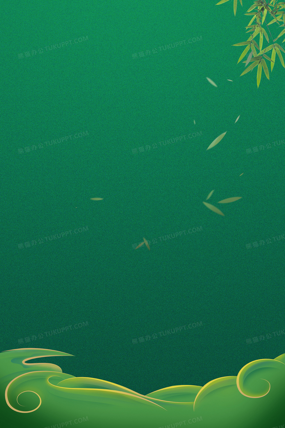 本作品内容为绿色简约中国风端午节背景, 格式为 psd, 大小91 MB, 图片尺寸为3543 x 5315, 作品中背景图片无需修改, 源文件无水印,可以直接使用, 欢迎使用熊猫办公。 如认为平台内容涉嫌侵权,可通过邮件:tousu@tukuppt.com提出书面通知,我们将及时处理。
