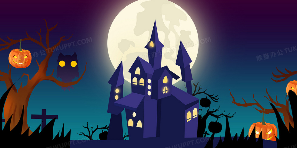 本作品内容为万圣节卡通城堡月亮南瓜手绘背景, 格式为 psd, 大小13 MB, 图片尺寸为4724 x 2362, 作品中背景图片无需修改, 源文件无水印,可以直接使用, 欢迎使用熊猫办公。 如认为平台内容涉嫌侵权,可通过邮件:tousu@tukuppt.com提出书面通知,我们将及时处理。