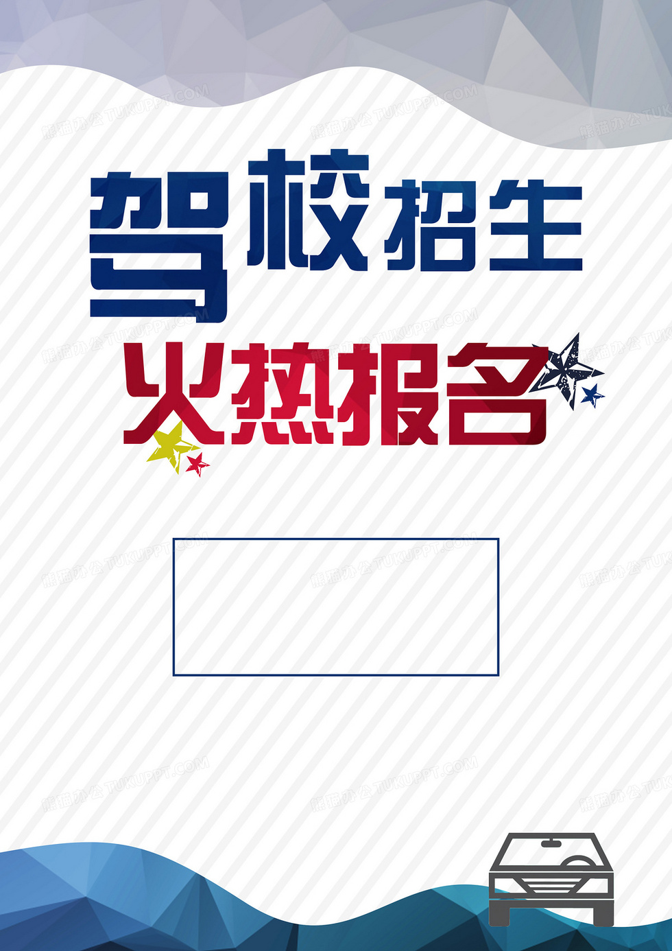 本作品内容为驾校招生矢量几何海报, 格式为 psd, 图片尺寸为3500 x 4951, 作品中背景图片无需修改, 源文件无水印,可以直接使用, 欢迎使用熊猫办公。 如认为平台内容涉嫌侵权,可通过邮件:tousu@tukuppt.com提出书面通知,我们将及时处理。