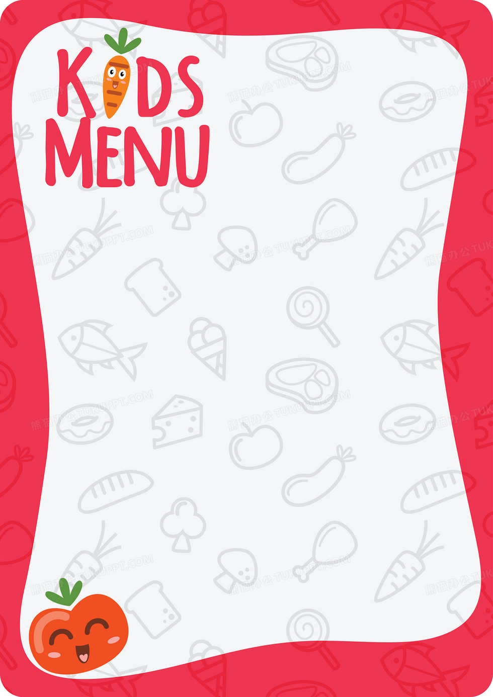 本作品内容为韩式儿童餐饮海报菜单手绘背景素材, 格式为 ai, 图片尺寸为2568 x 3631, 作品中背景图片无需修改, 源文件无水印,可以直接使用, 欢迎使用熊猫办公。 如认为平台内容涉嫌侵权,可通过邮件:tousu@tukuppt.com提出书面通知,我们将及时处理。