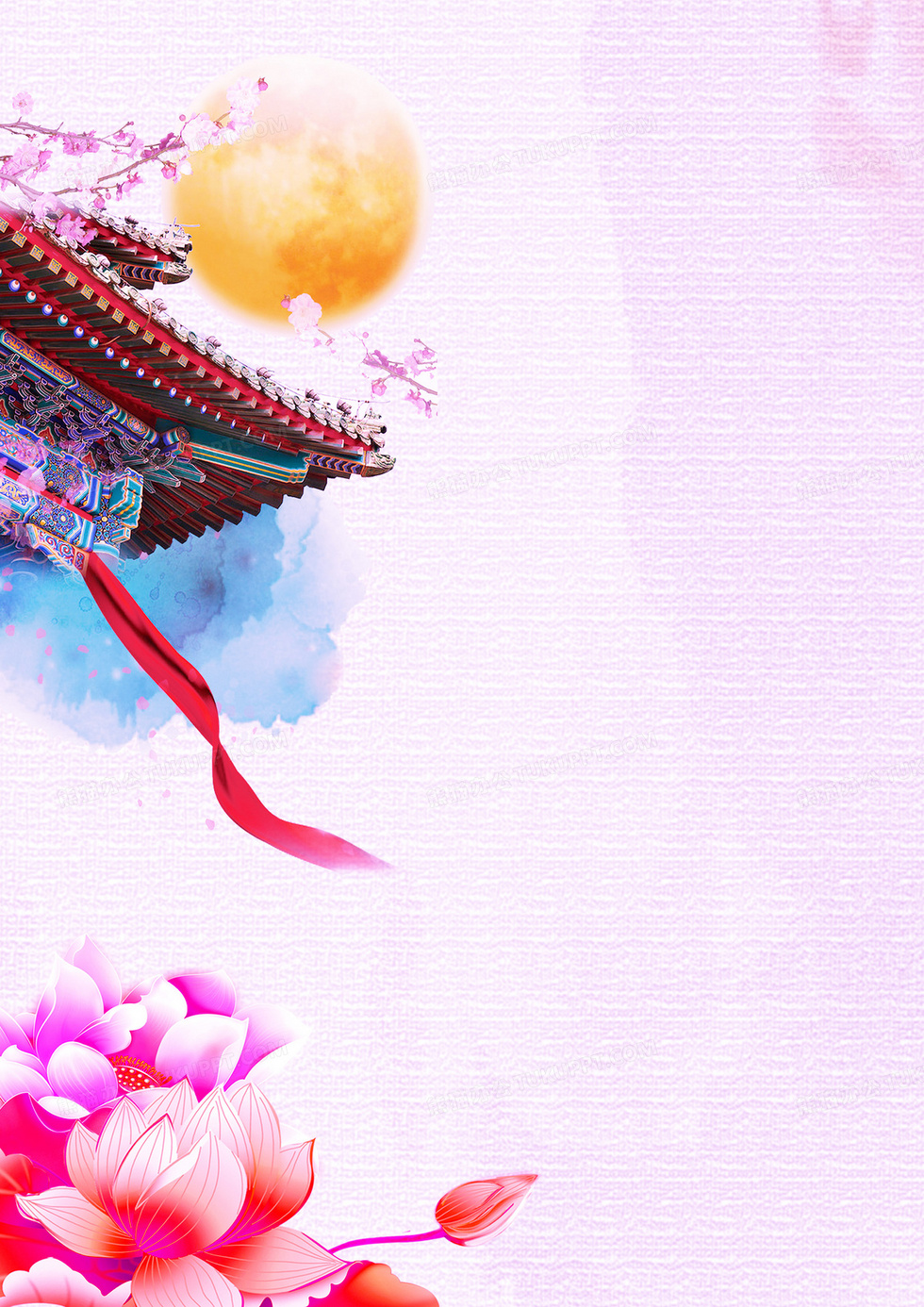 本作品内容为美丽屋檐月亮粉色背景素材, 格式为 psd, 图片尺寸为2480 x 3508, 作品中背景图片无需修改, 源文件无水印,可以直接使用, 欢迎使用熊猫办公。 如认为平台内容涉嫌侵权,可通过邮件:tousu@tukuppt.com提出书面通知,我们将及时处理。