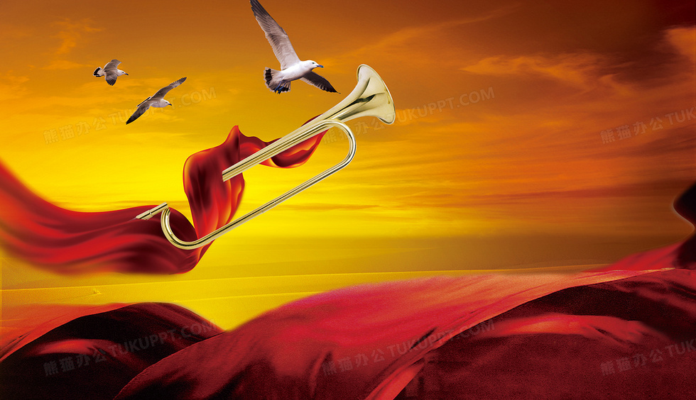 本作品内容为吹响号角节日喜庆展板背景素材, 格式为 psd, 图片尺寸为5984 x 3439, 作品中背景图片无需修改, 源文件无水印,可以直接使用, 欢迎使用熊猫办公。 如认为平台内容涉嫌侵权,可通过邮件:tousu@tukuppt.com提出书面通知,我们将及时处理。