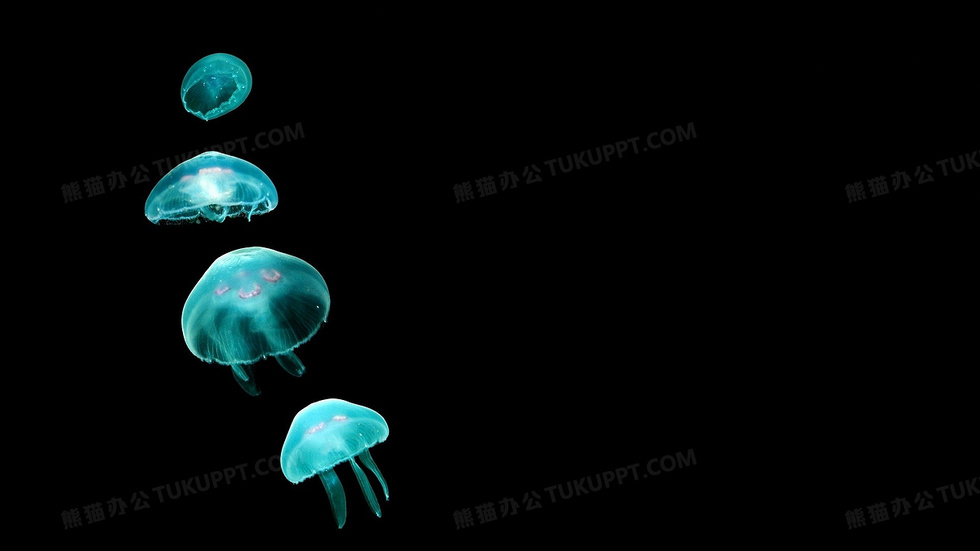 本作品内容为蓝绿色荧光水母背景, 格式为 jpg, 图片尺寸为3734 x 2100, 作品中背景图片无需修改, 源文件无水印,可以直接使用, 欢迎使用熊猫办公。 如认为平台内容涉嫌侵权,可通过邮件:tousu@tukuppt.com提出书面通知,我们将及时处理。
