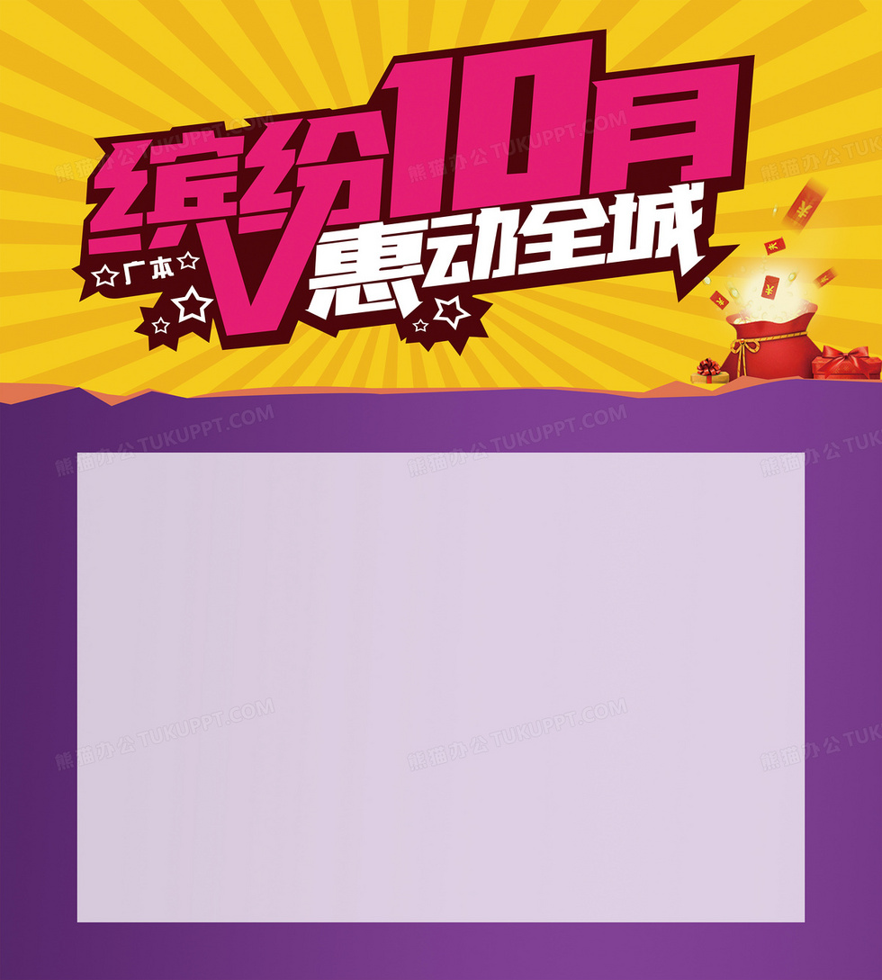 本作品内容为缤纷10月惠动全城海报, 格式为 psd, 图片尺寸为3062 x 3402, 作品中背景图片无需修改, 源文件无水印,可以直接使用, 欢迎使用熊猫办公。 如认为平台内容涉嫌侵权,可通过邮件:tousu@tukuppt.com提出书面通知,我们将及时处理。