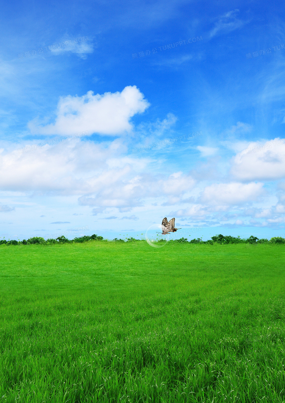 本作品内容为蓝天白云绿草地清新印刷背景, 格式为 psd, 图片尺寸为2480 x 3508, 作品中背景图片无需修改, 源文件无水印,可以直接使用, 欢迎使用熊猫办公。 如认为平台内容涉嫌侵权,可通过邮件:tousu@tukuppt.com提出书面通知,我们将及时处理。