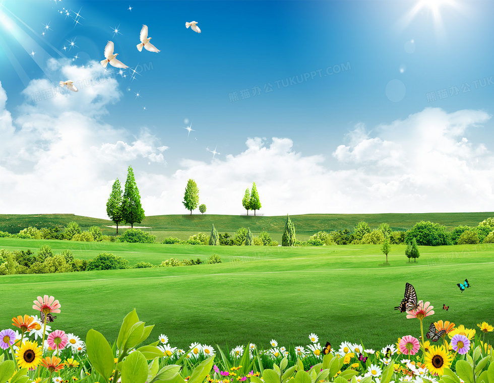 本作品内容为蓝色天空绿草地背景, 格式为 psd, 图片尺寸为2717 x 2109, 作品中背景图片无需修改, 源文件无水印,可以直接使用, 欢迎使用熊猫办公。 如认为平台内容涉嫌侵权,可通过邮件:tousu@tukuppt.com提出书面通知,我们将及时处理。