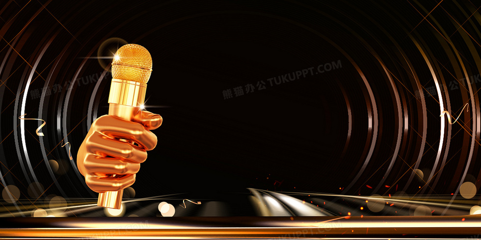 本作品内容为金色话筒主持人大赛黑金背景, 格式为 psd, 大小36 MB, 图片尺寸为4724 x 2362, 作品中背景图片无需修改, 源文件无水印,可以直接使用, 欢迎使用熊猫办公。 如认为平台内容涉嫌侵权,可通过邮件:tousu@tukuppt.com提出书面通知,我们将及时处理。