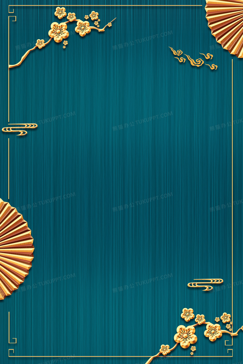 本作品内容为现代雅致中国风蓝绿梅花折扇鎏金背景, 格式为 psd, 大小25 MB, 图片尺寸为3543 x 5315, 作品中背景图片无需修改, 源文件无水印,可以直接使用, 欢迎使用熊猫办公。 如认为平台内容涉嫌侵权,可通过邮件:tousu@tukuppt.com提出书面通知,我们将及时处理。