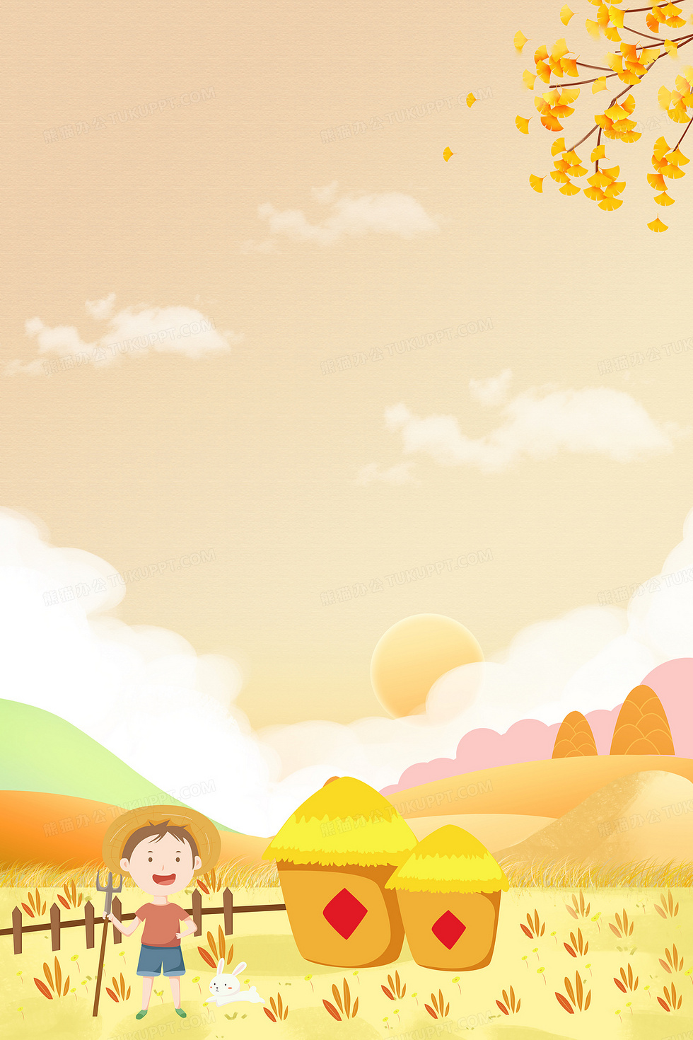 本作品内容为小清新卡通秋分丰收景色宣传海报背景, 格式为 psd, 大小117 MB, 图片尺寸为7087 x 10630, 作品中背景图片无需修改, 源文件无水印,可以直接使用, 欢迎使用熊猫办公。 如认为平台内容涉嫌侵权,可通过邮件:tousu@tukuppt.com提出书面通知,我们将及时处理。