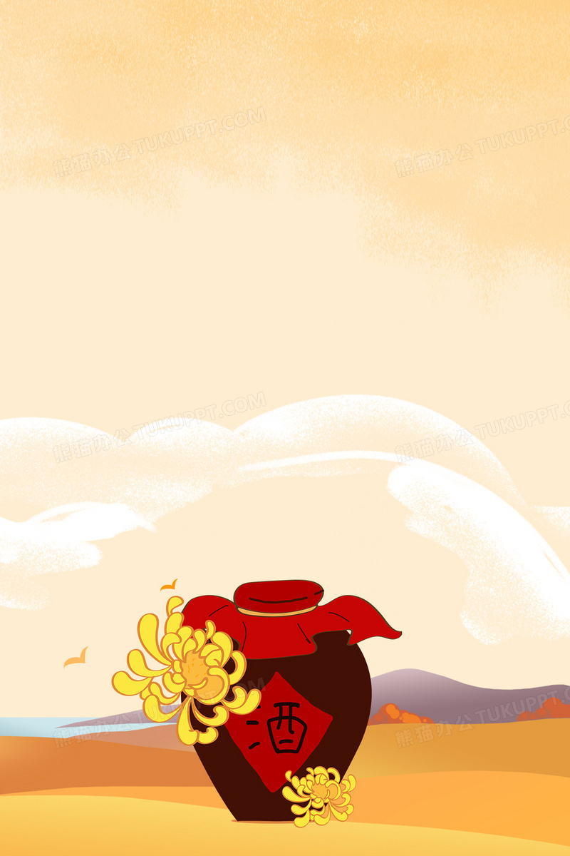 本作品内容为黄色简约重阳节传统习俗喝菊花酒背景, 格式为 psd, 大小76 MB, 图片尺寸为1181 x 1772, 作品中背景图片无需修改, 源文件无水印,可以直接使用, 欢迎使用熊猫办公。 如认为平台内容涉嫌侵权,可通过邮件:tousu@tukuppt.com提出书面通知,我们将及时处理。