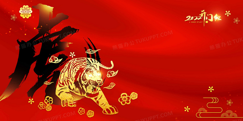 本作品内容为红色创意简约虎年艺术字新年喜庆背景, 格式为 psd, 大小32 MB, 图片尺寸为4724 x 2362, 作品中背景图片无需修改, 源文件无水印,可以直接使用, 欢迎使用熊猫办公。 如认为平台内容涉嫌侵权,可通过邮件:tousu@tukuppt.com提出书面通知,我们将及时处理。