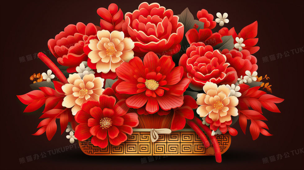 本作品内容为2024新年龙年喜庆浮雕花卉插画, 格式为 jpg, 大小6 MB, 图片尺寸为2912 x 1632, 源文件无水印, 欢迎使用熊猫办公。 如认为平台内容涉嫌侵权,可通过邮件:tousu@tukuppt.com提出书面通知,我们将及时处理。
